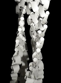 This is a component-based surface installation completed in collaboration with Hungkit Yuen. We juxtaposed opposing physical properties by pairing paper cups with rubber bands. Our piece explores the possibility of transforming the cups into flexible components; by unrolling the cups