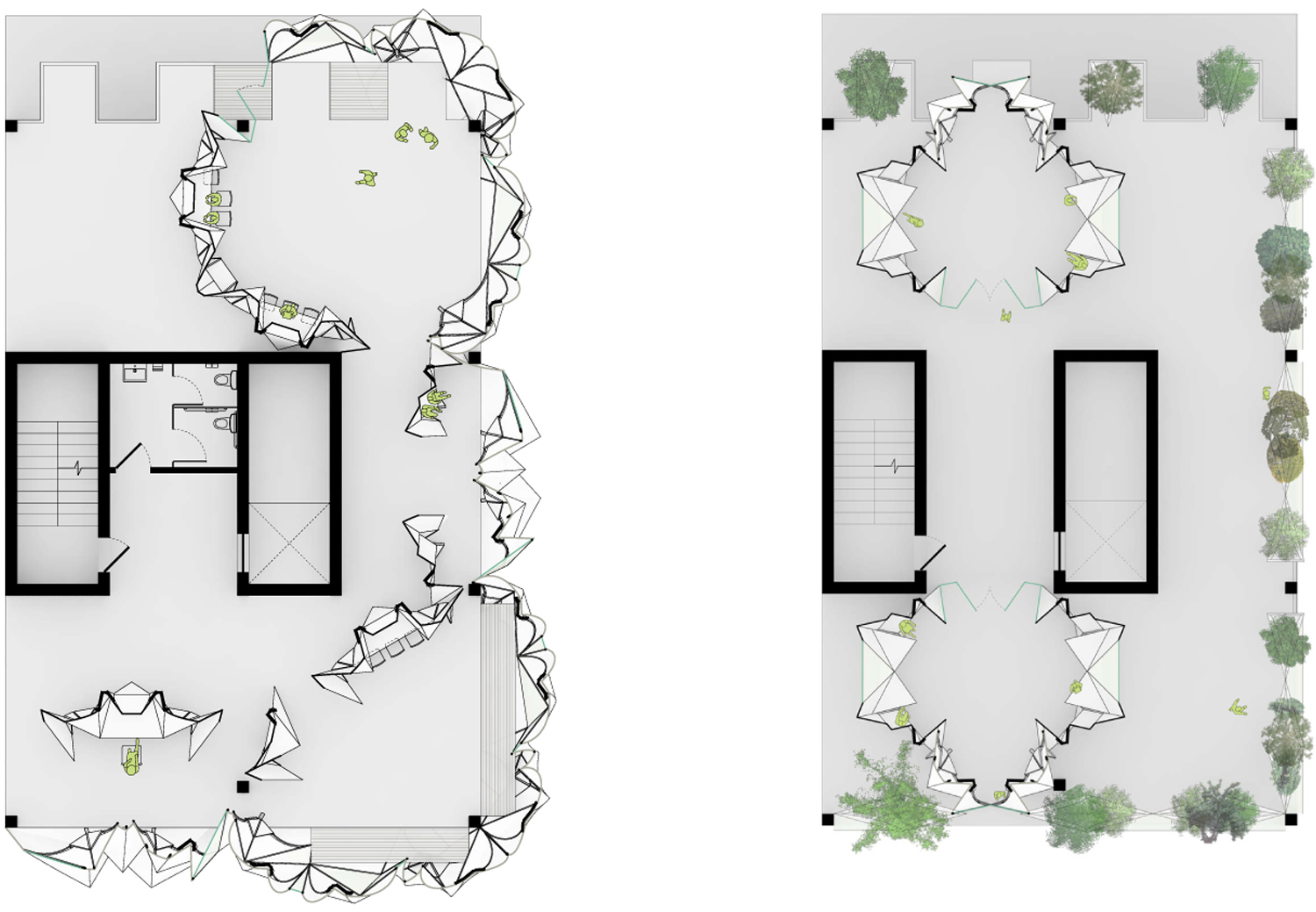 Classroom plan on the left and Garden/Study Room Plan on the right