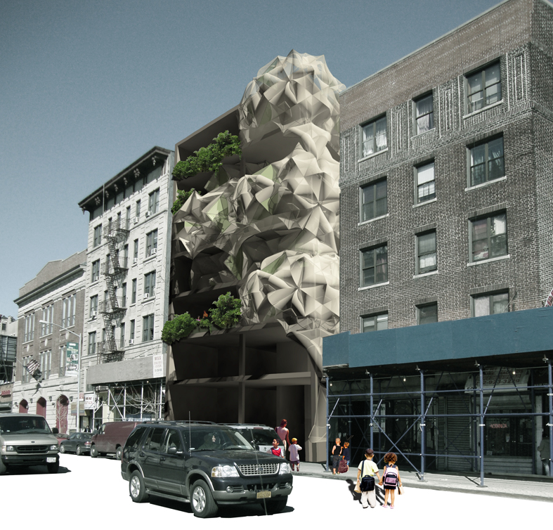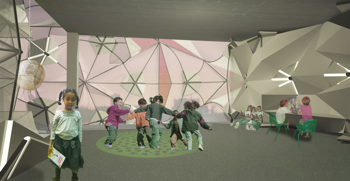 This project, developed in partnership with Kacie Comly, proposes a solution to two urban problems in New York City, overcrowded schools and abandoned construction sites, by temporarily taking over partially built abandoned construction projects for nearby schools that need more space. The project involves a system of deployable components that clad and seal off the interior of these buildings and provide built-in desks, seating, lighting, and storage. This enables a school to add extra classrooms quickly and incrementally and have many of the basics classroom needs supplied.