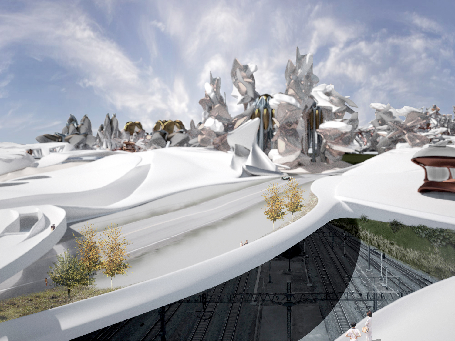 Working train tracks pass through the site.